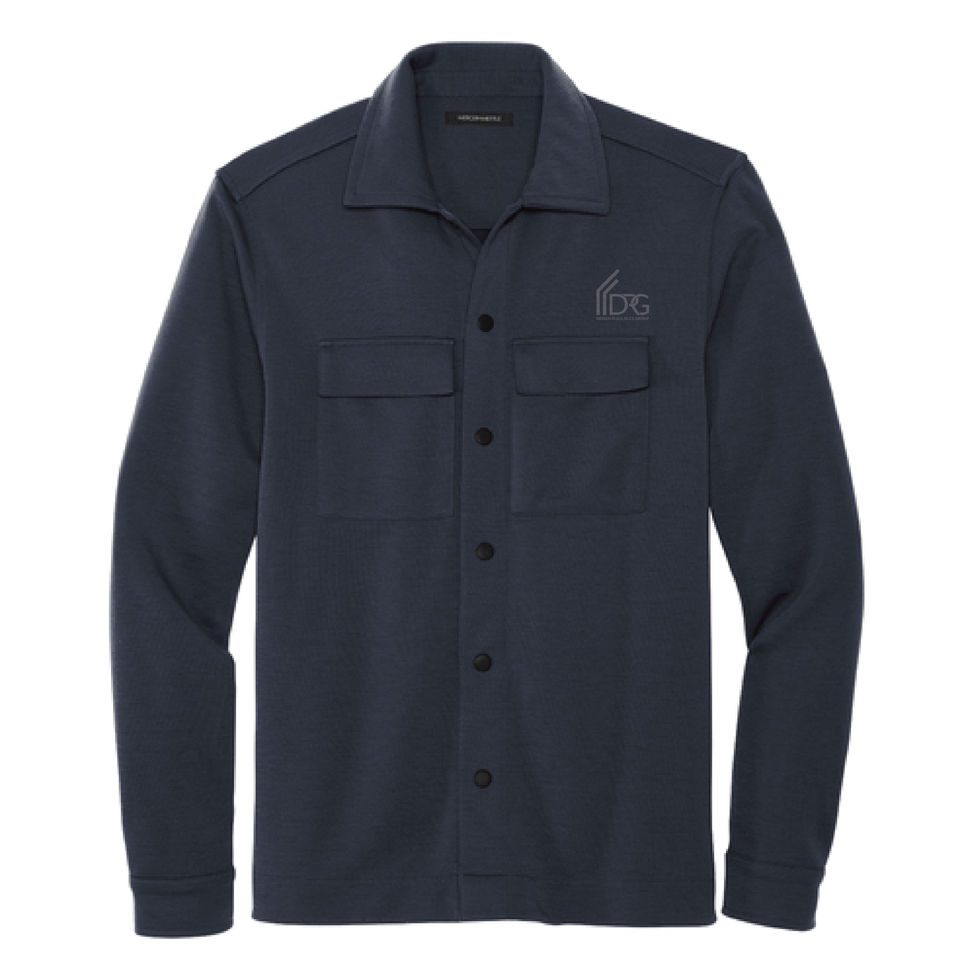 Made to be dressed up or down, this modern layer blends the laidback comfort of a sweatshirt and the sophistication of a tailored jacket. Matte-finished snaps on self-fabric cuffs allow for easy on and off wear. The open collar allows tees and shirts to stylishly peek through.