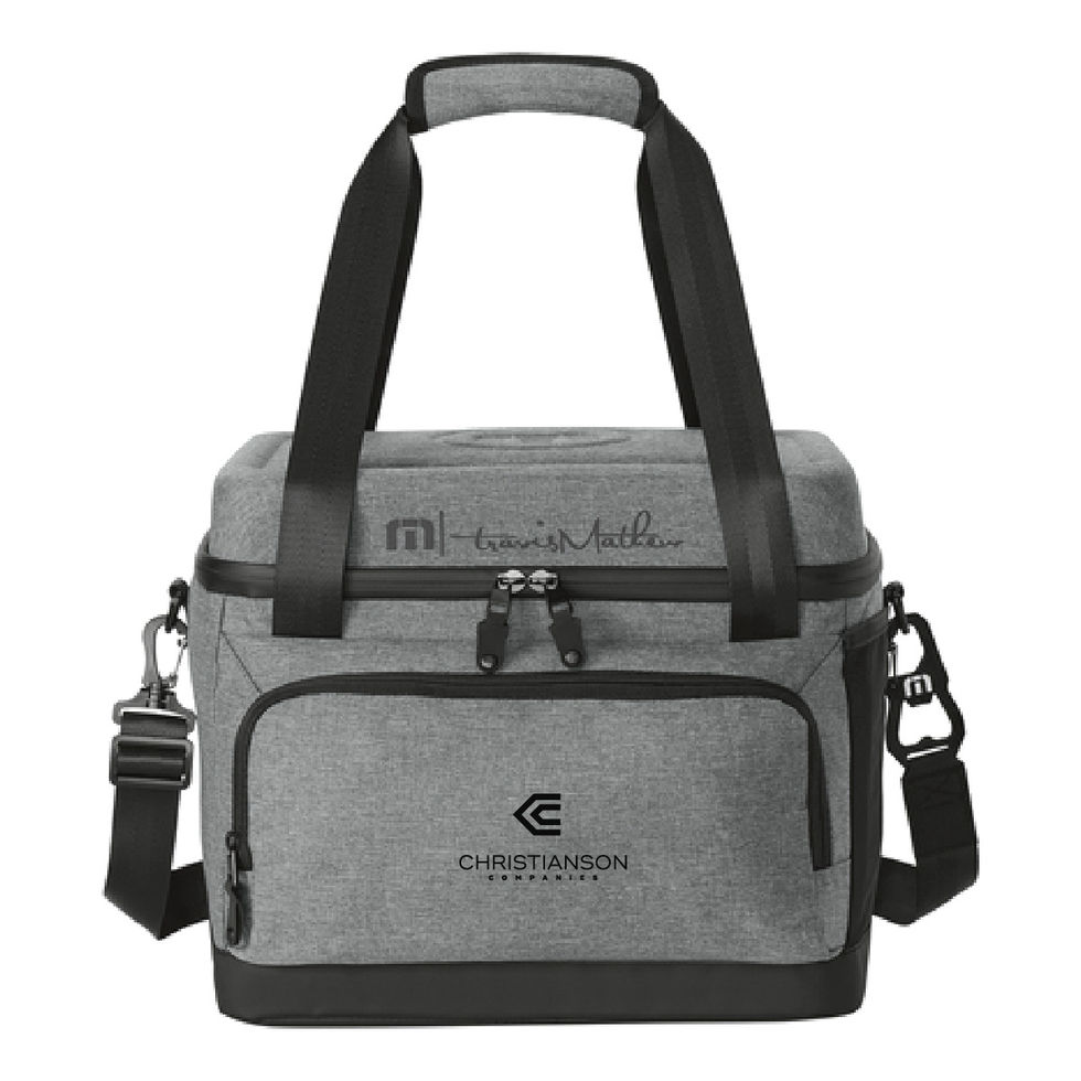 - Molded top panel with interior storage and heat transfer TravisMathew logo
